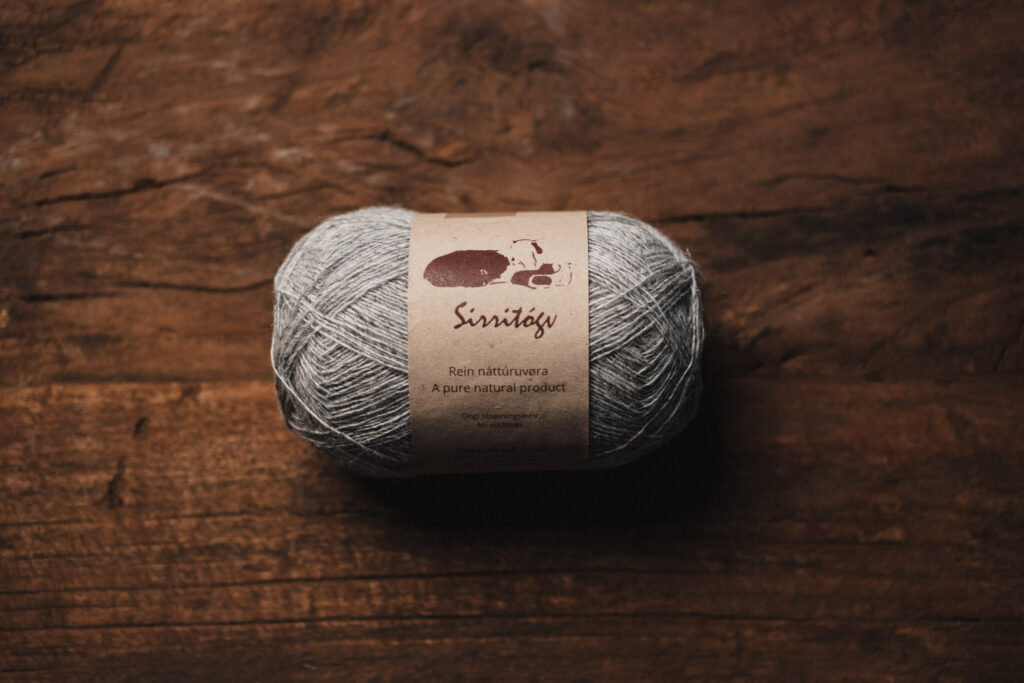 1 – 5 tráðað Sirri tógv í ymiskum náttúrulitum: hvítt, ljósagrátt, myrkagrátt, myrkamorreytt